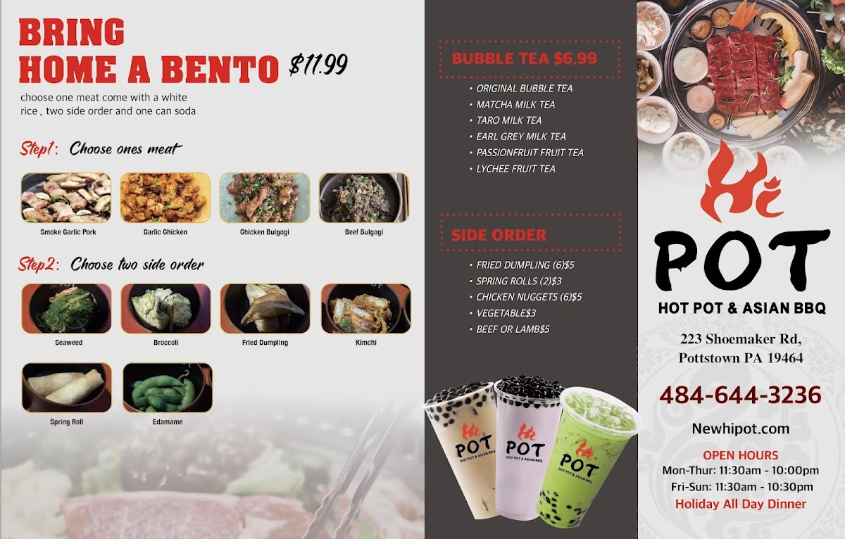Welcome to Hi Pot - Pottstown, a culinary gem located in Pottstown, PA, that promises a delightful dining experience for hot pot and Korean BBQ lovers. Nestled at 223 Shoemaker Rd, this restaurant takes pride in its diverse menu, featuring flavorful dishes and unique bubble tea options.